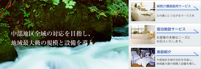 医療機関、ホテルを中心に、医療寝具類・シーツ・タオル・テーブルクロスといったリネン類のクリーニング、医療・介護器具・宿泊施設用品の販売レンタルを行っております。