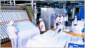 美濃工場・高山工場は、お客様のあらゆるニーズに対応する最新鋭機器と設備を備え、2万床(ベッド)/日のクリーニング及びリネンサプライの機能を誇る中部地区最大級の工場です。