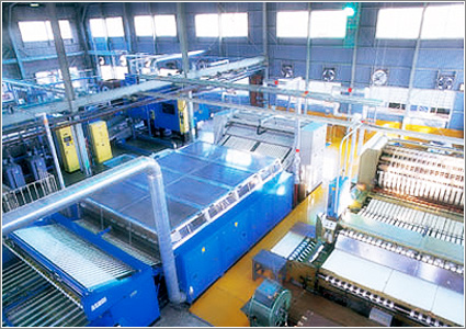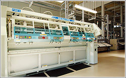 大口ドラムの振動によるモミ洗いと回転による強力なタタキ洗いで、一段と強力な洗浄力を確保した連続洗濯装置。肌に優しいイオン交換水を使用し、イオン水貯水用タンクも72トンで寝具リネン業界全国最大級です。