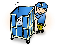 お客様の使用したリネンを分別回収しトラックで工場へ集めます。